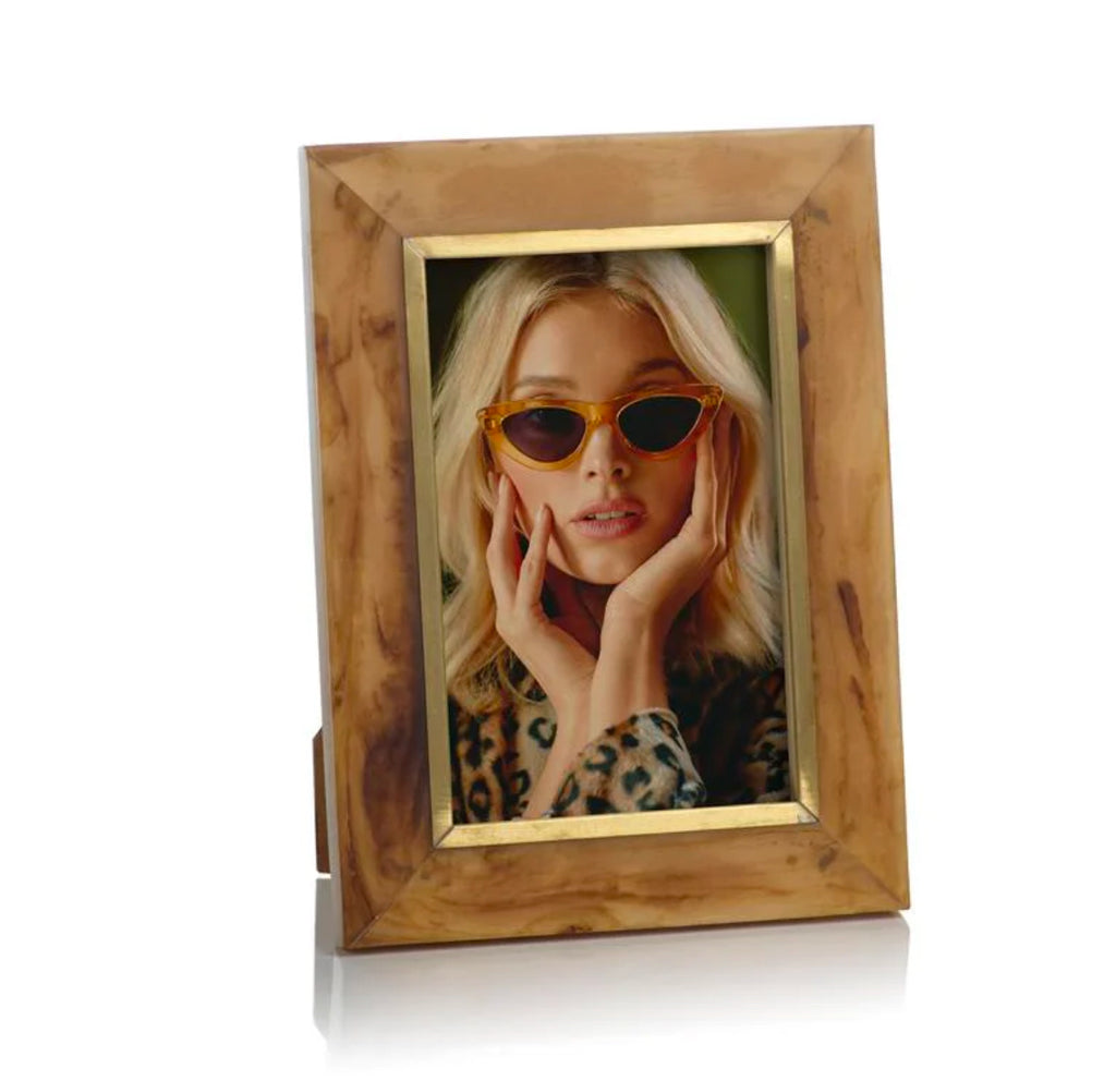 ZODAX HORN DESIGN INLAID PHOTO FRAME W/ BRASS ACCENT
